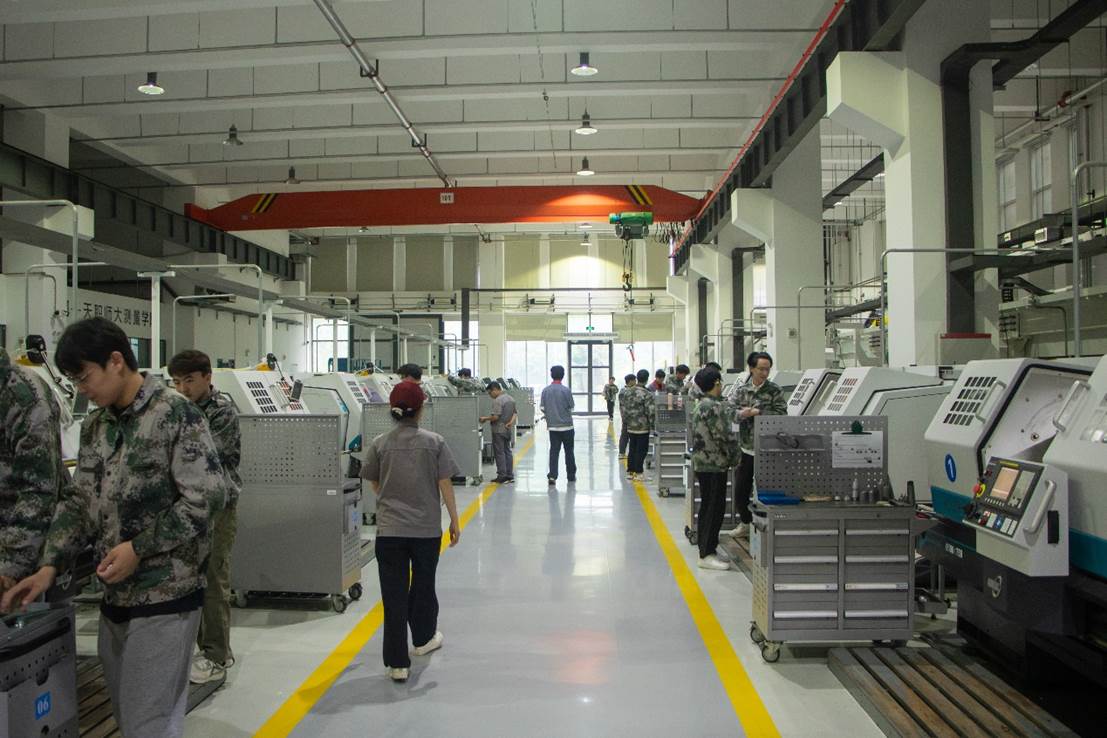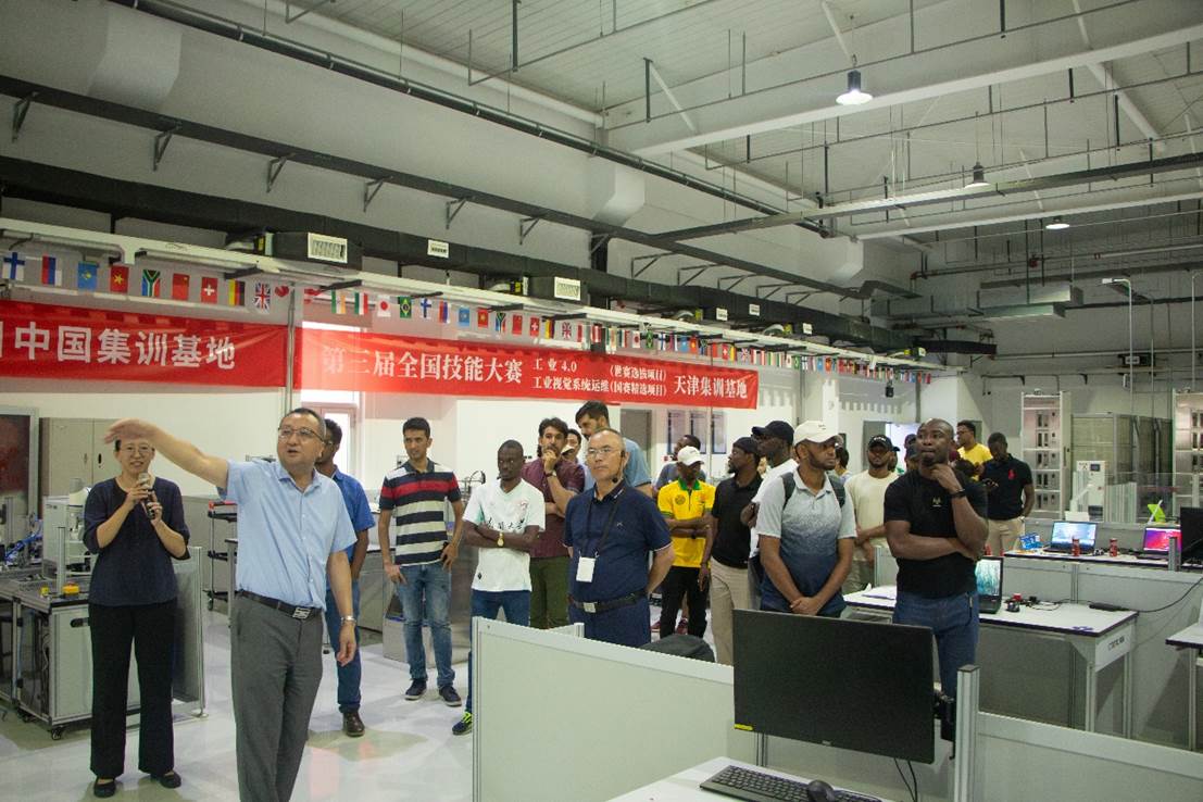 留学生们走进国内同类规模最大、5万多平米的工程实训中心,在国家技能大师徐国胜的亲自引领与解说下,亲身体验智能制造、机器人操作等实践课程。