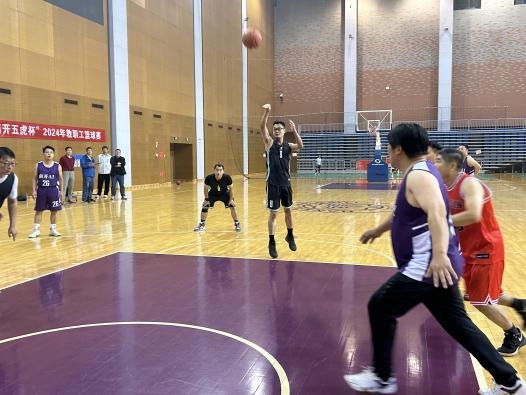 男队教工们分别与环境科学与工程学院、人工智能学院、材料科学与工程学院、计算机学院、网络空间安全学院的队伍搏杀,取得两胜两负、津南B组第三名的成绩;女队教工们经过几天的训练,顺利完成运球和投篮接力赛。参加三分球大赛的三位男教工也取得了较好成绩。