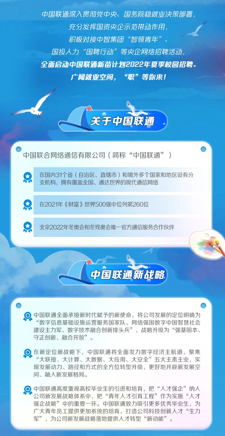 中国联通2022年夏季校园招聘正式启动
