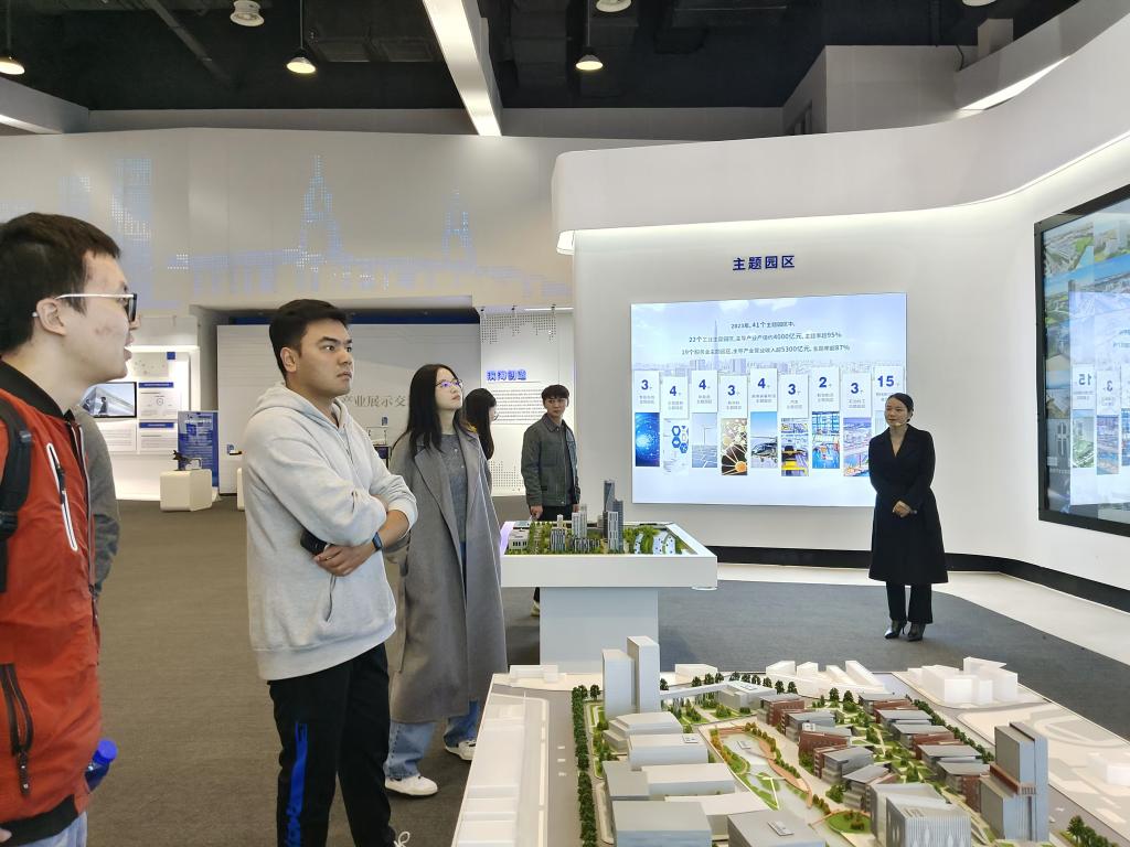 当天下午,为吸引同学们“爱津留津”,了解滨海新区区情,学院为参与同学精心设计了滨海新区精品产业游线路。首先,同学们参观了位于于家堡金融区的美丽滨城会客厅。会客厅分为三个板块,分别是奋斗之城、美丽滨城和新时代之城,其运用多项数字化技术手段呈现滨海新区发展史,雄壮瑰丽的美丽滨城奋斗故事如画卷般缓缓展开。接下来,同学们参观了天津经开区建区40周年展览。展览聚焦改革开放时代背景,以时间为轴,以情景叙事,按照开发开放奋战盐碱滩(1984年-1991年)、勇立潮头众志建新城(1992年-2000年)、未雨绸缪往岁尽峥嵘(2001年-2012年)、万丈豪情奋进新征程(2013年至今)四个主题板块,全面展示了天津经开区40年来,从盐碱荒滩蝶变成现代化产业新城,更成为国家级经开区发展的典范的创业成就。