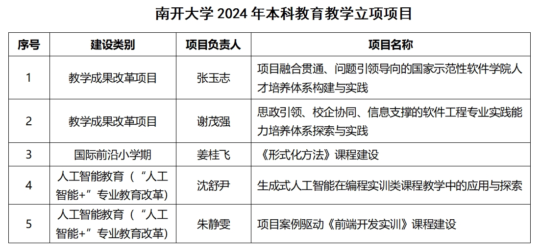 2024年本科教育教学改革拟立项名单的公示》,我院推荐申报的5个项目全部获批。具体立项名单如下: