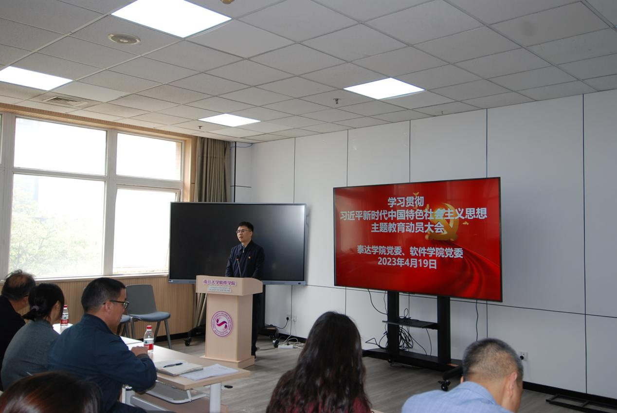 胡军书记指出,要深刻认识开展主题教育的重大意义,从政治引领的高度、从实践需要的高度、从伟大工程的高度、从南开担当的高度,把思想和行动统一到习近平总书记重要讲话精神和党中央决策部署上来;全面准确把握目标要求,要牢牢把握“学思想、强党性、重实践、建新功”的要求,紧紧锚定目标任务,凝心铸魂筑牢根本,锤炼品格强化忠诚,实干担当促进发展,践行宗旨为民造福,廉洁奉公树立新风,全面落实重点措施,强化理论学习,加强党性锤炼,深入调查研究,推动高质量发展,抓好检视整改,确保主题教育取得实效;切实加强组织领导,压实主体责任,注重统筹兼顾,加强宣传引导,确保学院主题教育高质量开展。
