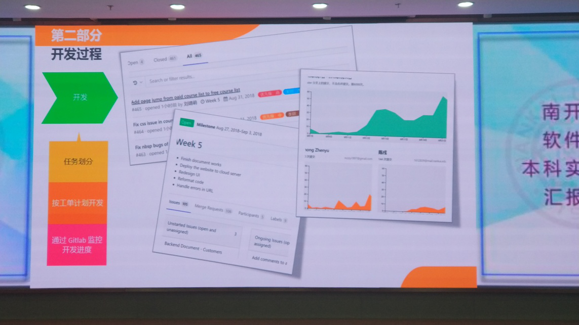 学生团队们展示了自己设计开发的在线购物平台、网上购票、在线音乐播放、外卖平台、在线少儿英语、少儿围棋教育等多套软件系统。对项目过程、采用的移动互联网、大数据、人工智能等技术、团队开发的经验总结作了认真热情的汇报。到场的老师们认真听取了同学们的精彩汇报,并为每个团队进行了进一步的指导。