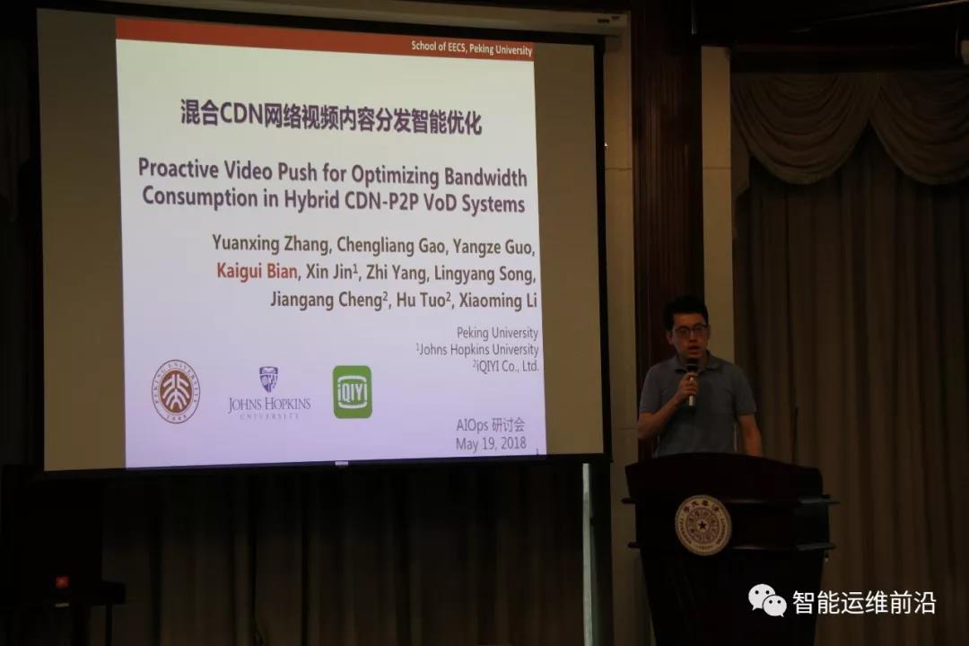 之后,来自北京大学信息科学技术学院的边凯归副教授,就Proactive Video Push for Optimizing Bandwidth Consumption in Hybrid CDN-P2P VoD Systems(发表在IEEE INFOCOM 2018)做了报告,展示了边教授与爱奇艺合作的在视频流带宽优化方面的最新研究成果。
