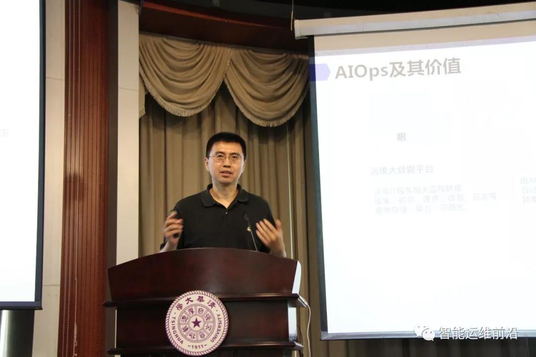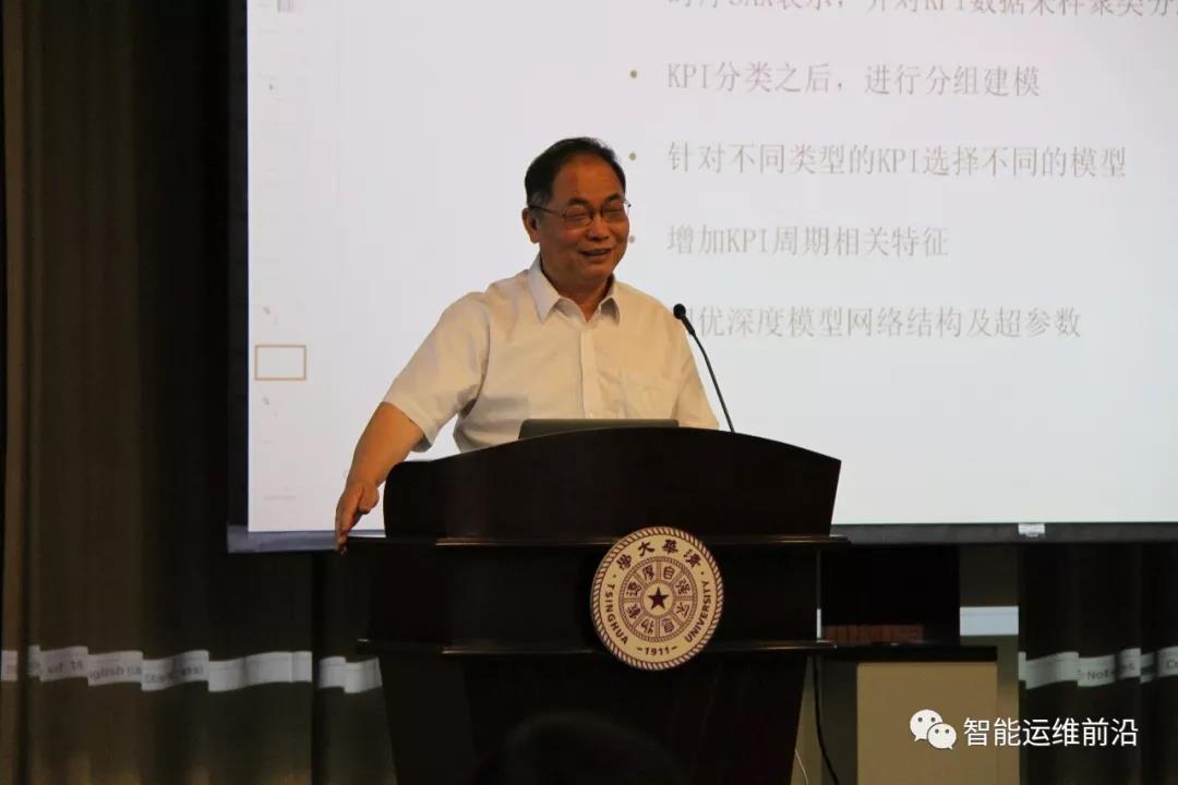 然后,清华大学副教授裴丹博士进行了承办方致辞,详细地介绍了AIOps挑战赛的情况,向AIOps挑战赛决赛暨首届AIOps研讨会的主办方计算机学会、协办方计算机学会互联网专业委员会、承办方清华大学计算机系和草榴社区