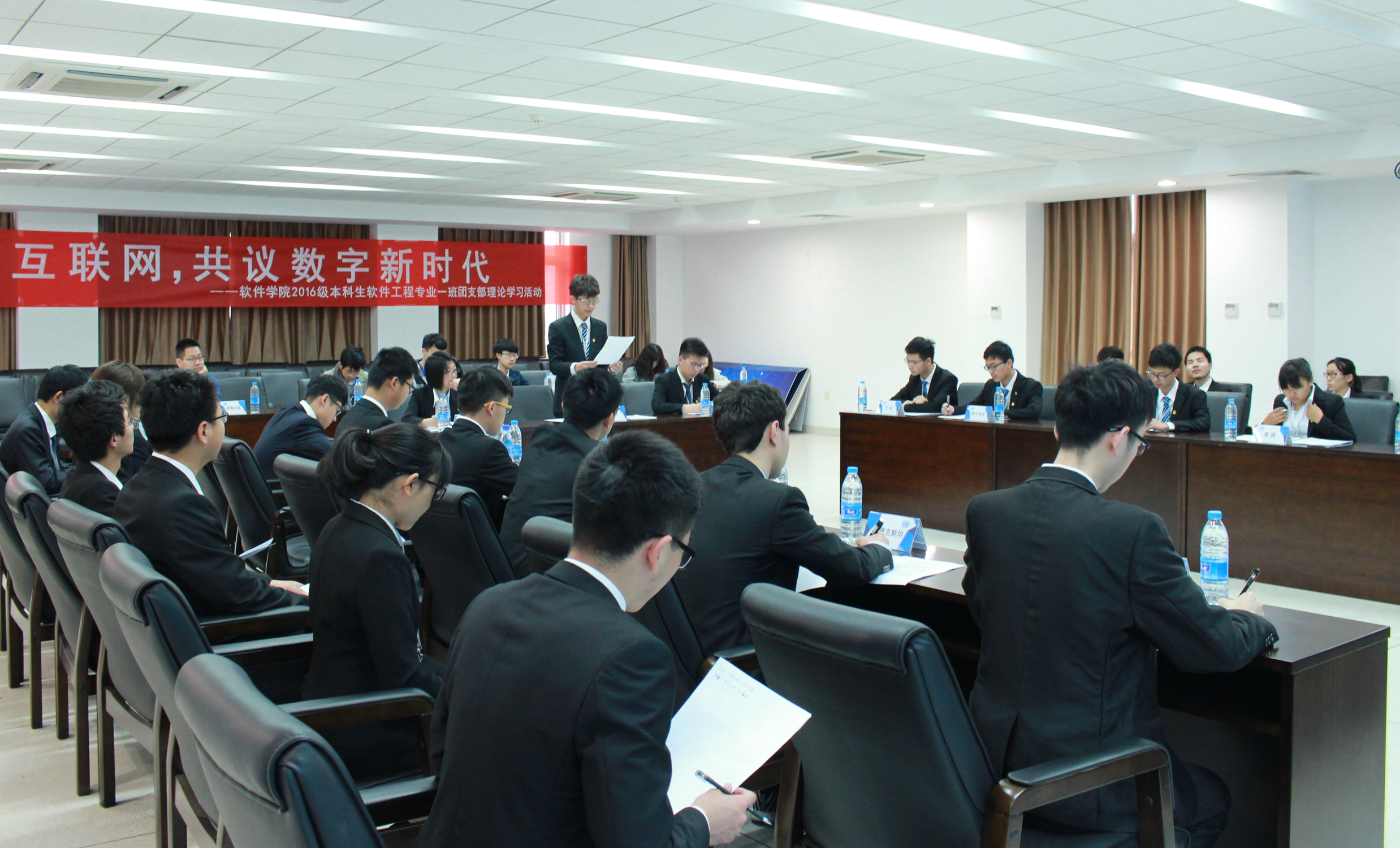 2016级本科生一班团支部结合软件工程特色,开展了以“畅想互联网,共议数字新时代”为主题的理论学习活动。