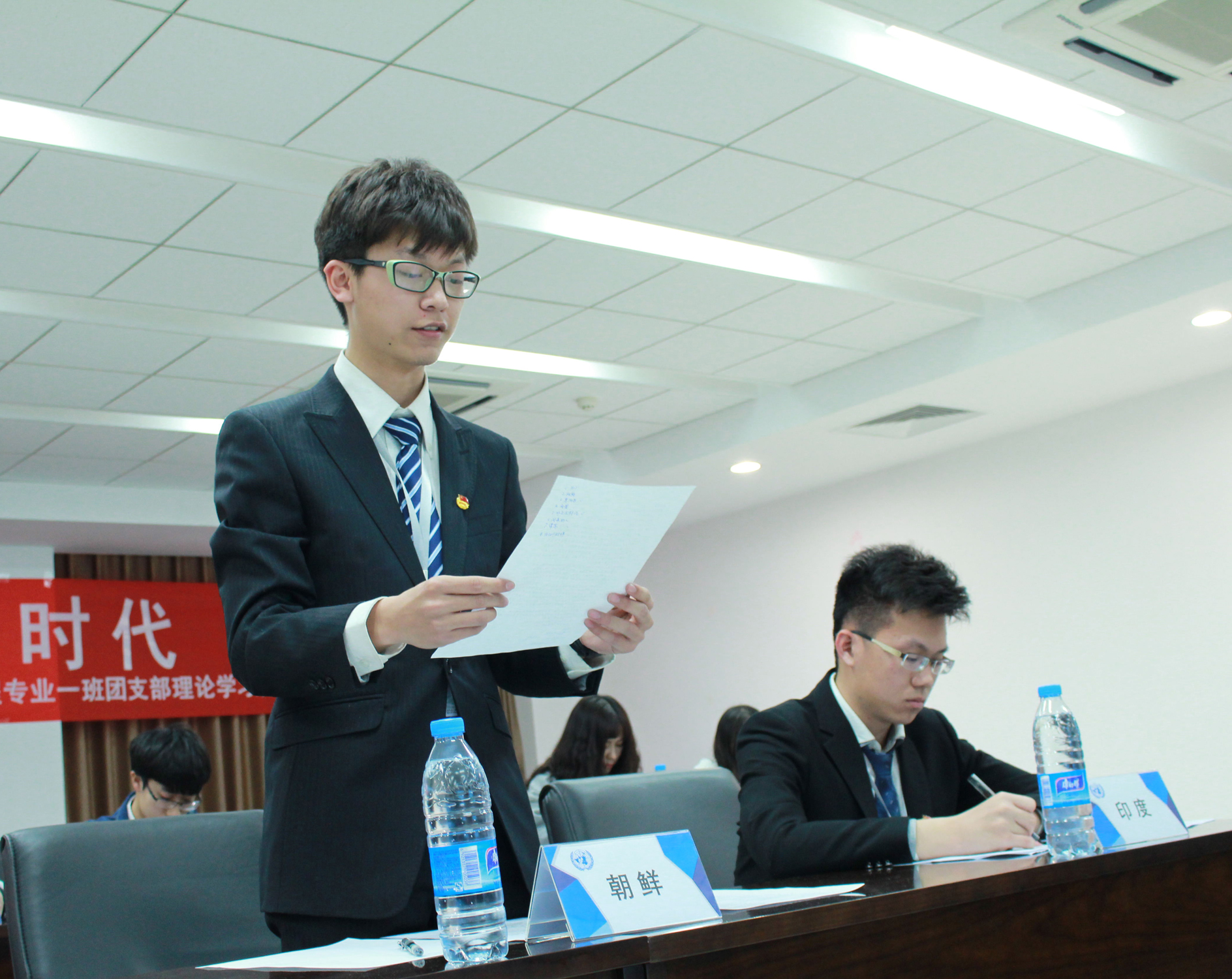 本次理论学习开展了以“是否应该共建世界互联网产业同盟”为议题的模拟联合国活动。在模联活动中,同学们身着正装,注意力集中,有条不紊地发表着所代表的国家的看法,并对相关的议题进行了热烈讨论。草榴社区