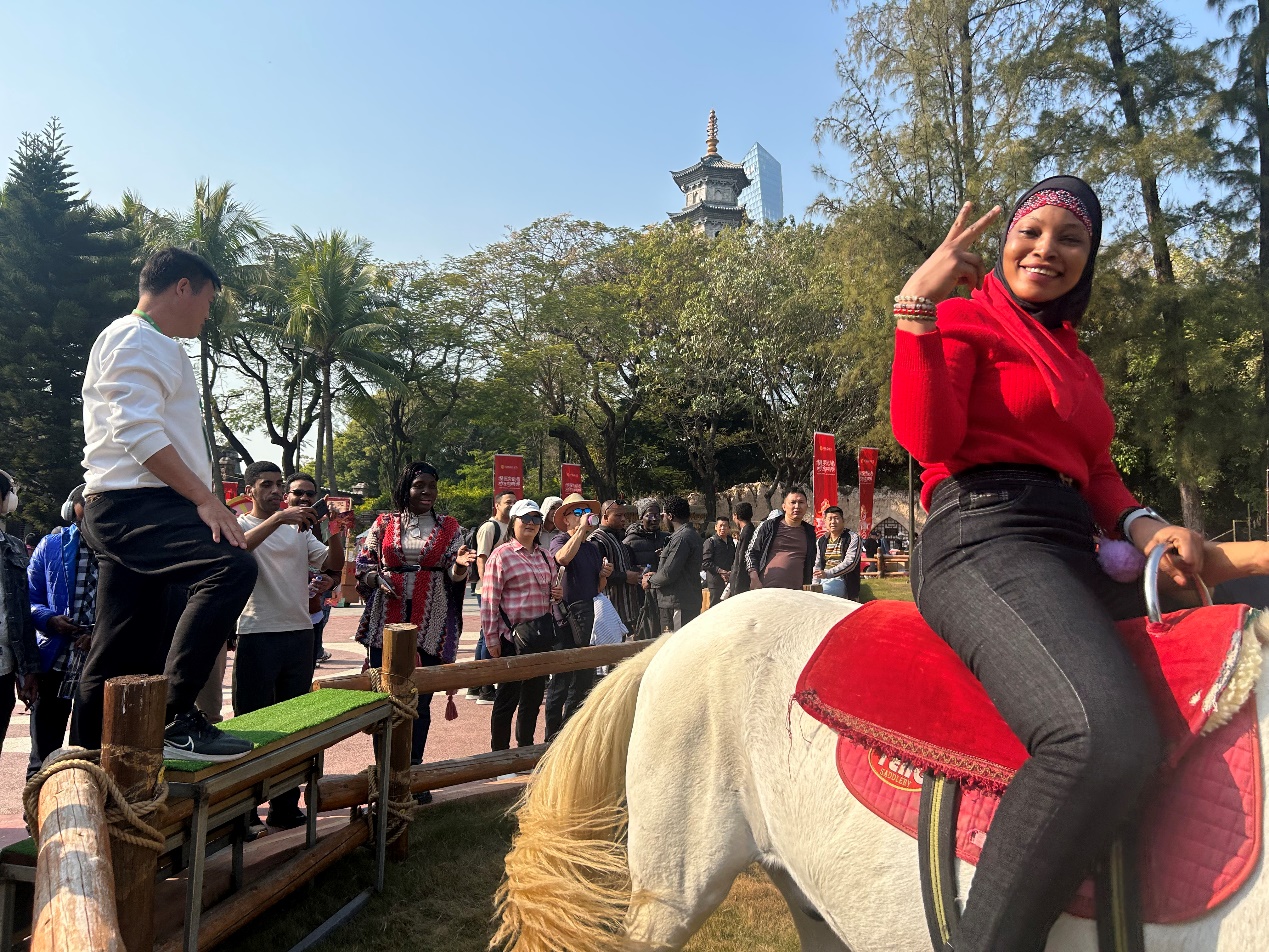 在深圳,留学生们多次专门深入华强北电子市场,体验中国“硅谷”电子产品种类之丰富、产业规模之巨大。在中华民俗文化村,留学生们不仅欣赏到了颇具民族风情的歌舞表演,更是亲身参与到中华民俗园的各项游览活动。1月21日,留学生参访支持机构深圳市对外经济技术合作促进会会长,特别从外地赶回深圳,在穆斯林风味餐厅西北领头羊举办招待晚宴,留学生们再一次深刻体验到中国美食文化之博大精深。