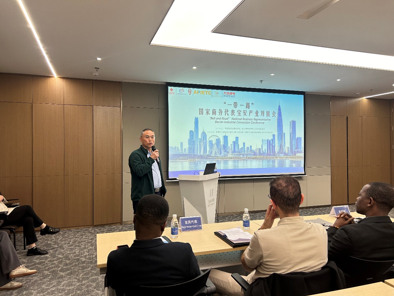 留学生为对话伙伴,专门组织了一场“一带一路”国家商务代表宝安产业对接会,宝安区领导与海龟协会会长系统全面地推介深圳宝安区的经济发展、产业优势、外贸合作政策,并跟留学生们展开了深入的对话。
