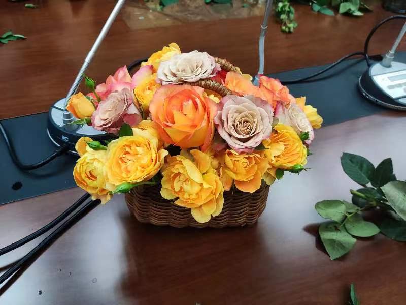 现场花枝满满,为大家准备好了花瓶和花篮,参加活动的同学早早赶到现场,以高涨的热情投入到插花创作之中。同学们充分发挥想象力和创作力,认真挑选鲜花,结合花材的特点,修剪枝叶、搭配色彩、设计造型,同学们相互交流插花心得,享受着亲自创作的乐趣。花香氤氲,音乐轻柔,欢声笑语中,一束束错落有致的花束呈现在眼前。