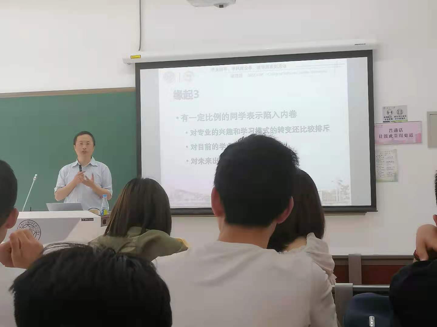 (通讯员 蒋向哲)为了解答同学们在学习生活中出现的困惑,调整自身,逐渐明确个人发展方向,2021年5月20日下午,特色班学业导师谢茂强教授为特色班的同学召开了“个人能力与专业兴趣培养”的主题班会。