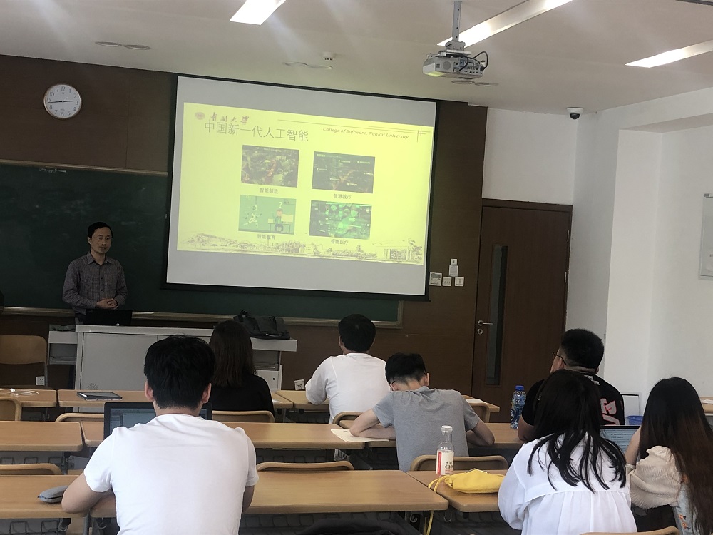 “知中国服务中国”的学术传统为切入点,要求同学们要明确自身社会责任,学术科研成果要立足于国家,立足于民族,要善于利用软件工程专业知识去解决国家发展中遇到的问题。他围绕我国经济技术的发展现状、主要矛盾的转变以及国际地位的提高,着重讲述了近些年人工智能技术在社会主要领域的发展与应用,与同学们共同探讨中国新一代人工智能的发展规划,深入分析了“智能制造、智能城市、智能教育、智能医疗”等智能化服务方面的发展前景。