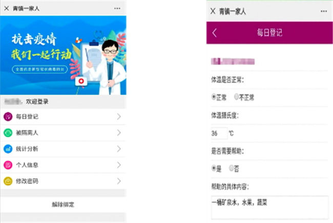 2月,正在宁夏青铜峡镇一线抗疫校友发来一条关于基层工作中防疫信息统计费力的求助信息,支部成员们迅速行动起来,昼夜工作,采用敏捷开发的方式,收到需求后仅一天就完成了一个简单、方便、高效的脚本语言,为后期项目团队开发服务号后台提供了大量有效的基础算法,为该乡镇5.47万人民群众筑起抗疫堡垒。党支部书记、2019级硕士研究生黄德军说:“虽然昼夜不分是‘程序猿’的常态,但亲身参与到疫情防控工作中,是我最振奋、最有劲头的一次。”